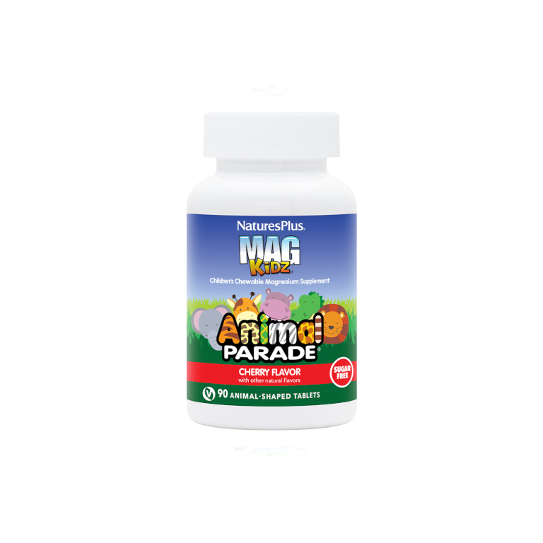 Animal Parade® Mag Kidz contiene 50 mg di aspartato di magnesio con elevata biodisponibilità. L’integratore, al gusto di ciliegia, è in compresse orosolubili.