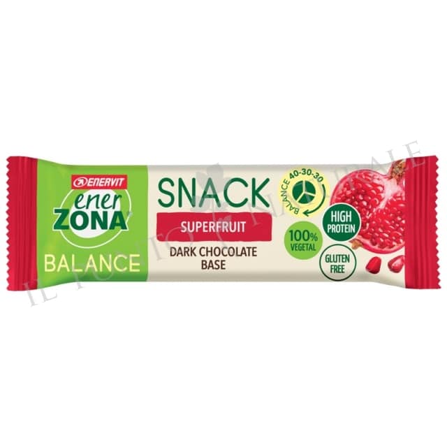 EnerZona Snack 40-30-30  è un gustoso snack arricchito con vitamina E e con fibre. L’apporto calorico della barretta, diviso tra carboidrati, proteine e grassi è il 40%-30%-30% delle calorie totali.