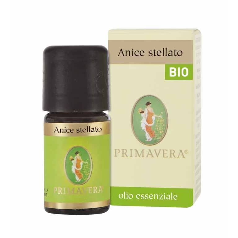 Olio essenziale di anice stellato, Illicium verum, 100% puro, naturale e totale, proveniente da coltivazioni biologiche controllate. Estratto per distillazione in corrente di vapore dai frutti e dai semi.